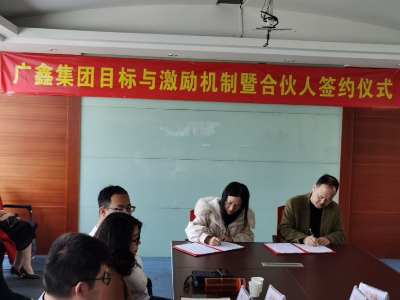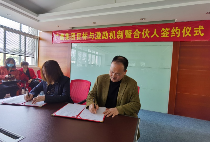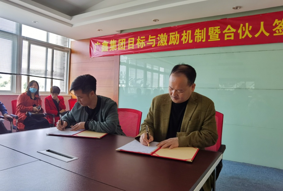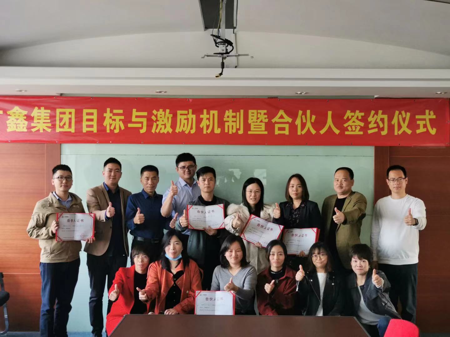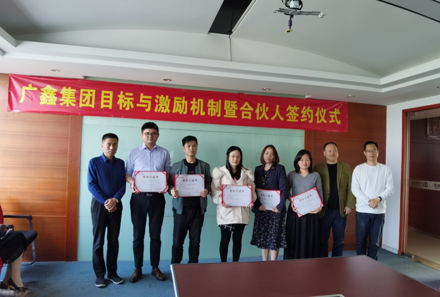 2021年2月7日,广鑫首期合伙人签约仪式在公司集团总部成功举行。首期包括营销和供应链在内的7个团队共31位员工正式签约成为公司合伙人,广鑫各级管理者与核心骨干共同见证广鑫这一历史时刻。