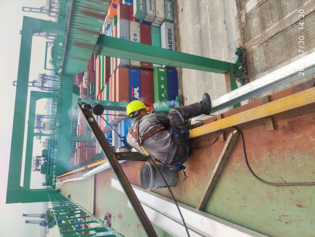 七月如火,暑伏的太阳炙热无比,广州集装箱码头轨道吊(四台)拖令改造项目正在紧锣密鼓的开展。