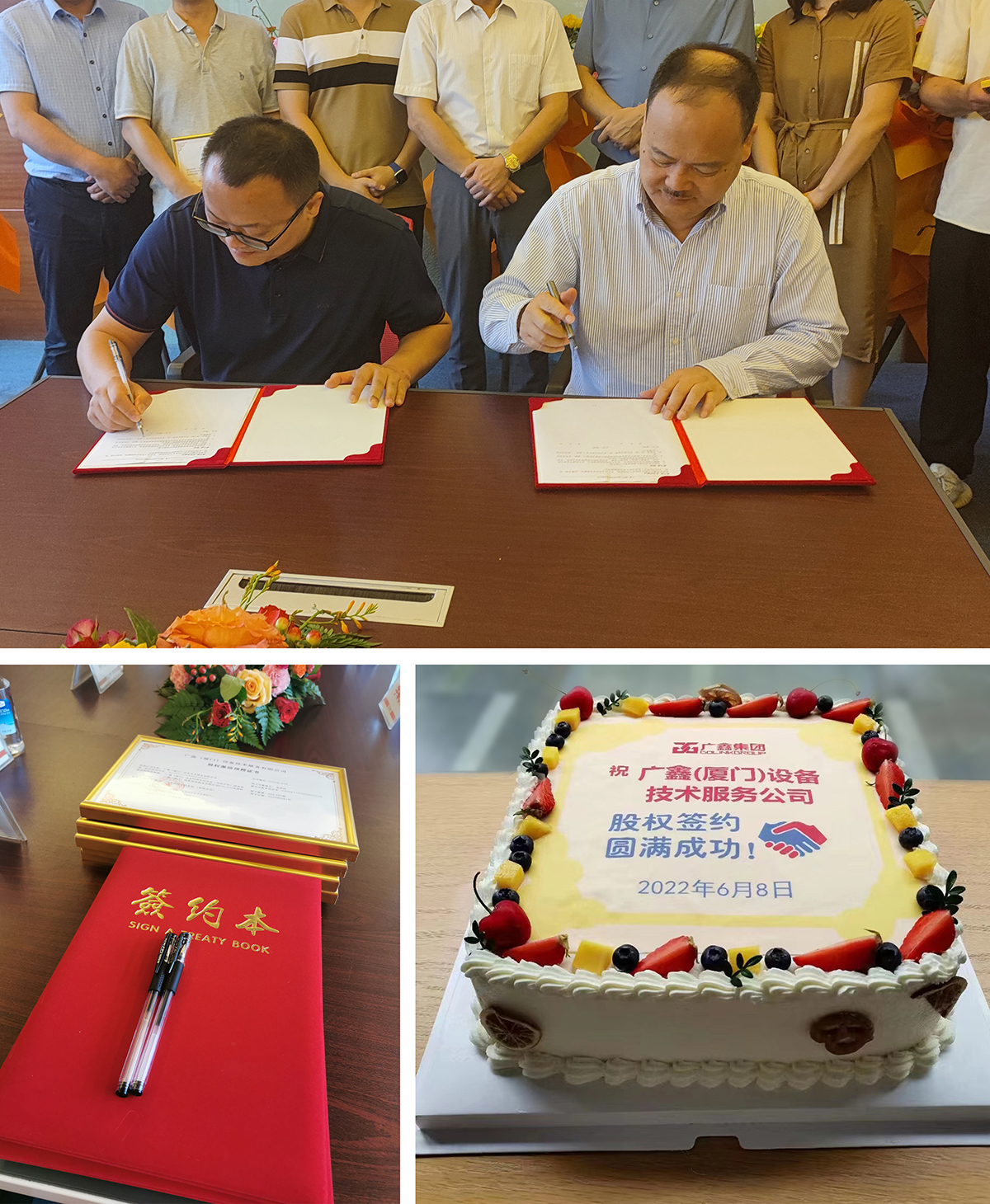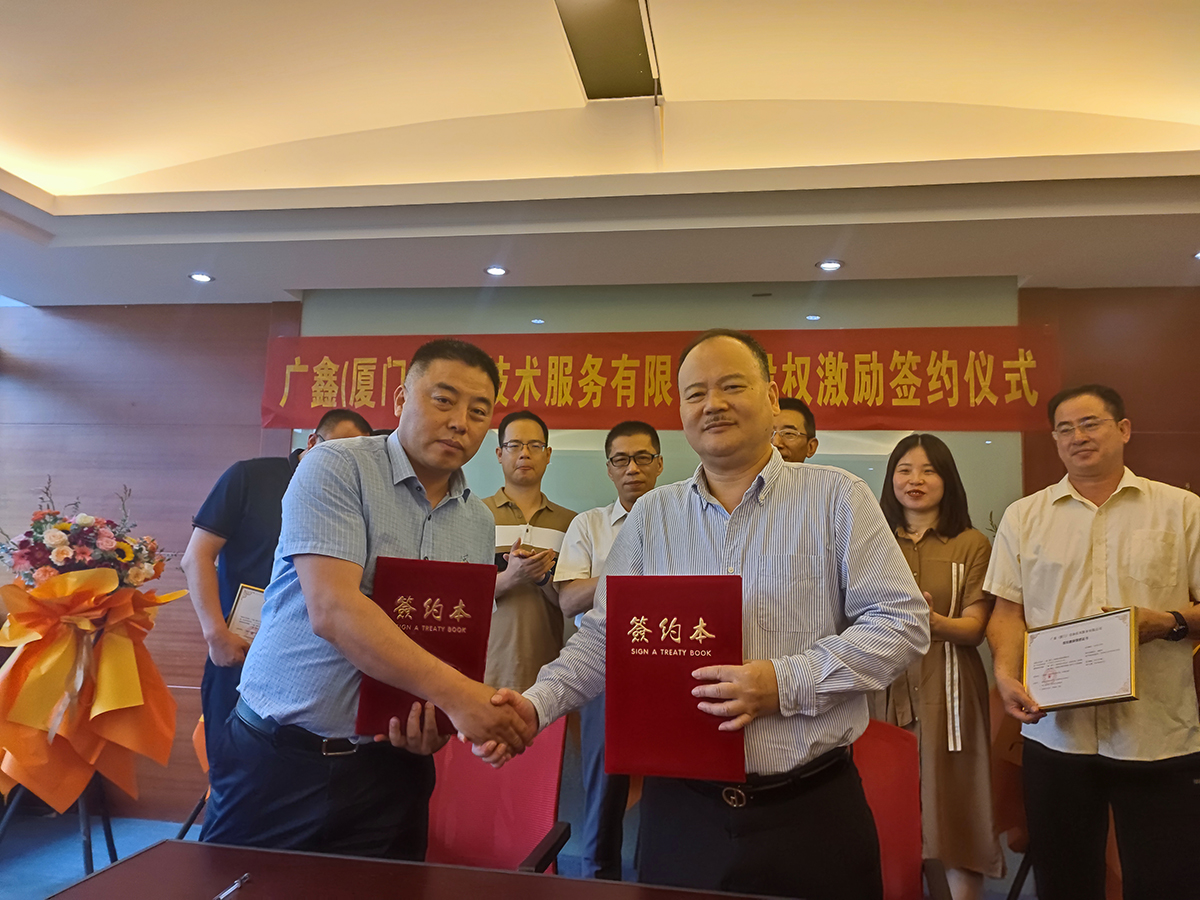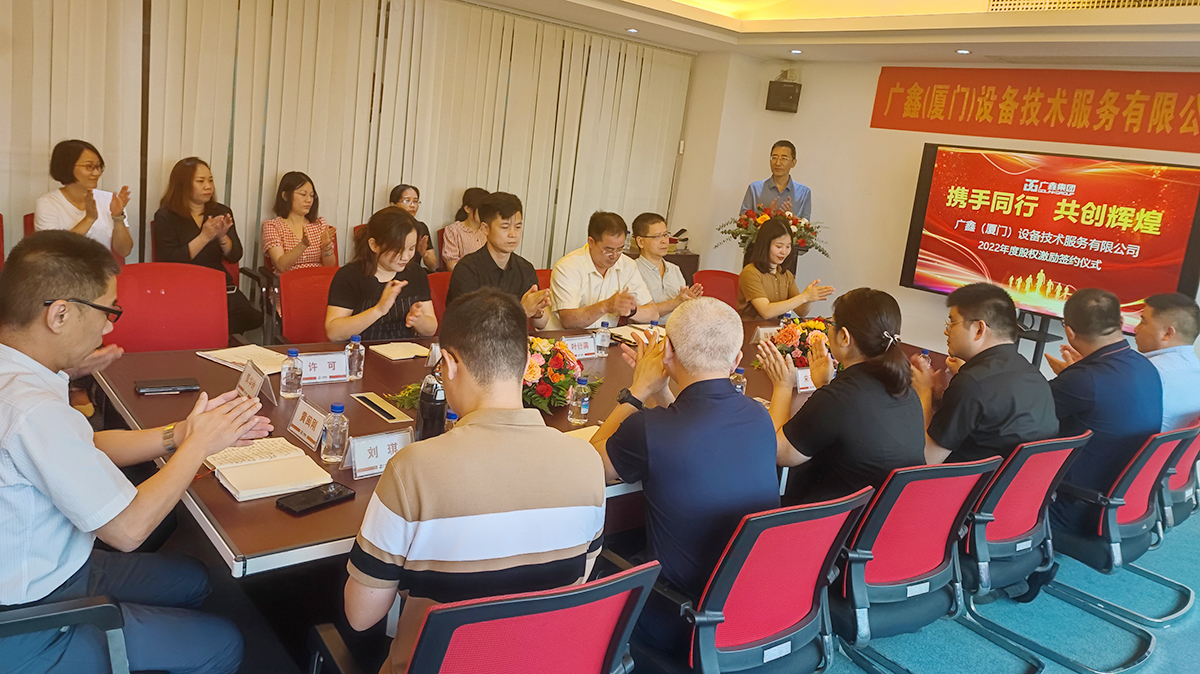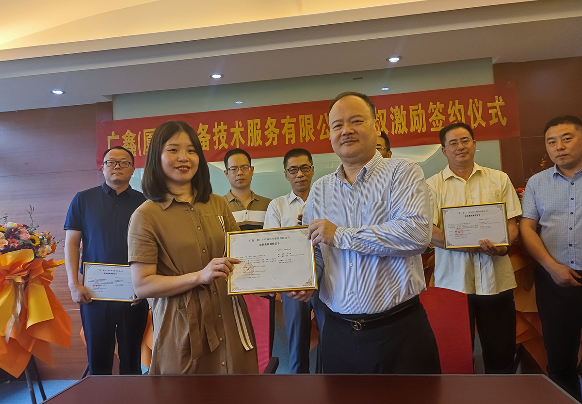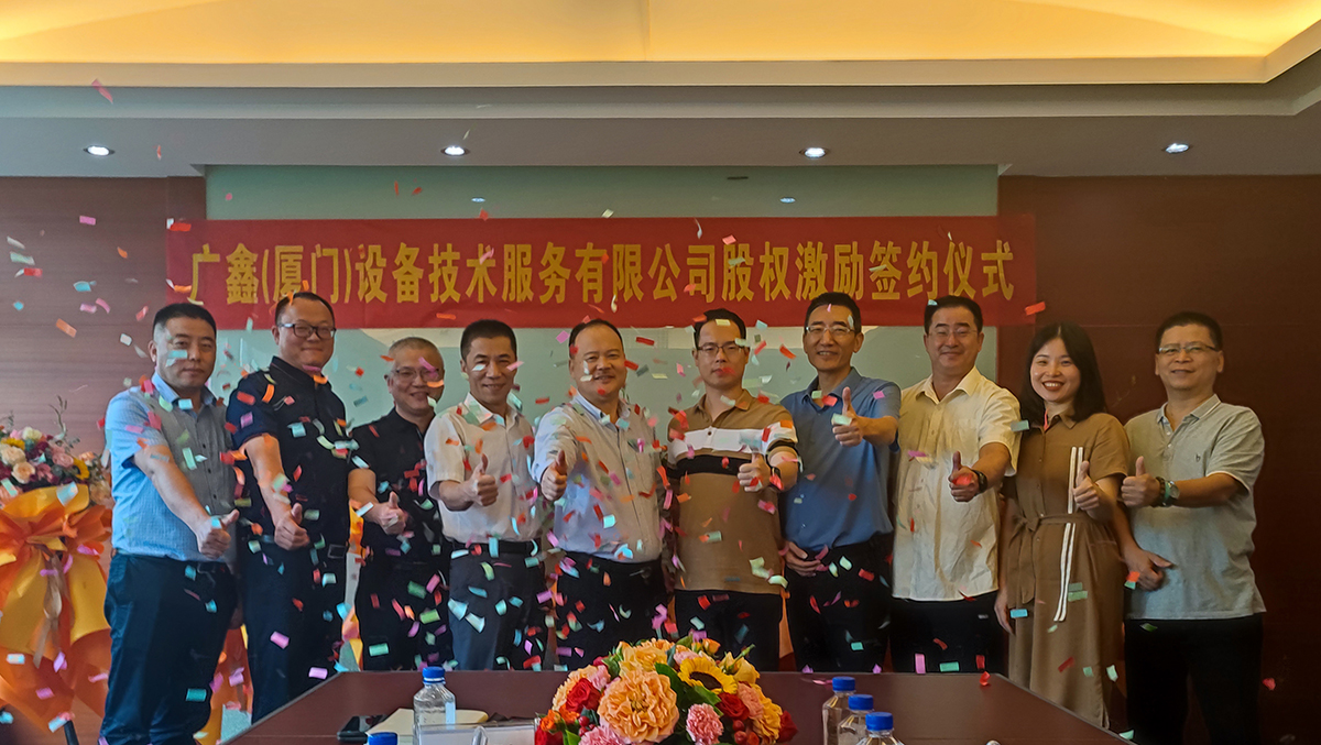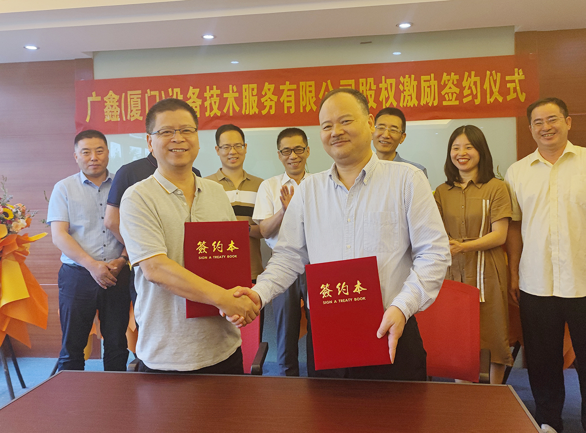 为实现企业与员工一起成长、共享成功的果实,2022年6月8日,广鑫(厦门)设备技术服务有限公司股权激励签约仪式在广鑫集团厦门总部正式举行。