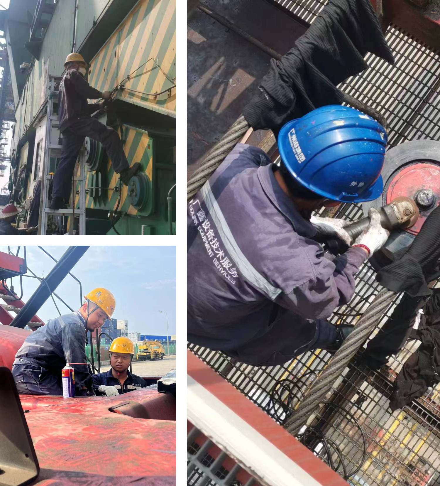 设备的运行正常就是生产保障,就是企业效益。设备抢修,就是和时间赛跑。分布在各大港口服务驻点部的广鑫伙伴们,在几十米高的港机设备上,顶着炎炎烈日,克服码头现场近50度高温,利用自身各项过硬的专业技术进行维保服务。他们战高温,斗酷暑,严格按照服务要求的质量和时间力保各项任务圆满交付,坚决提升设备的生产运营保障能力!伏天里炎炎烈日不留情,长期的汗渍在工服留下标准 “体型”,这几乎是每个现场员工服装的标准色。