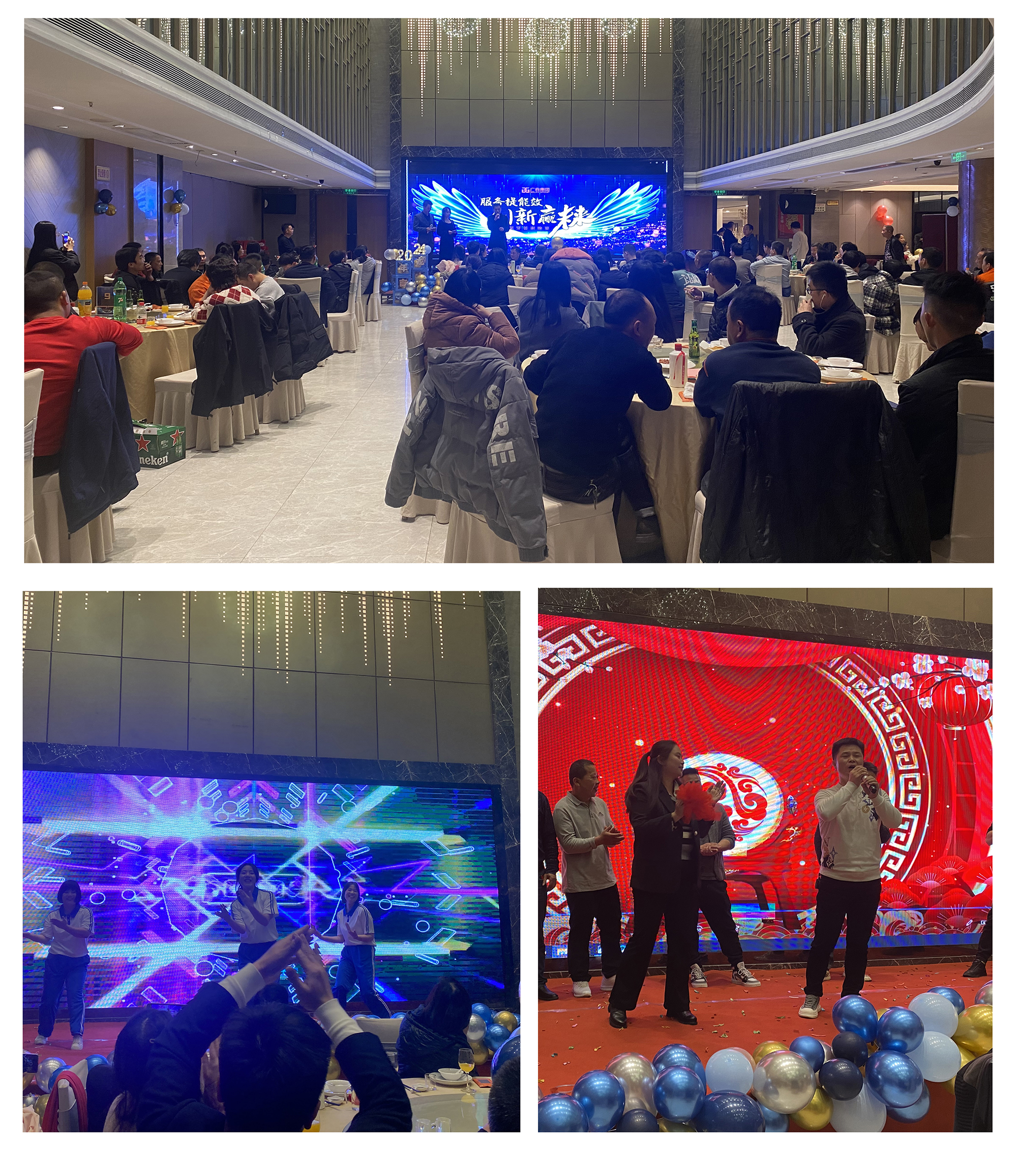 晚宴期间,员工们自发组织了一系列精彩纷呈的节目,为晚宴增添了无限欢乐。特别是迎财神的节目,将晚宴的气氛推向了高潮,让每个人都沉浸在节日的喜悦和新年的希望之中。