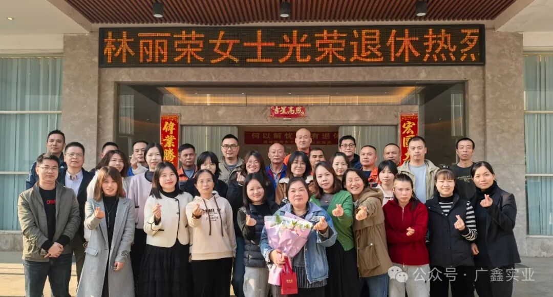 2024年12月31日,这是一个饱含温情与敬意的日子。广鑫集团员工齐聚一堂,共同为敬爱的林姐举行了一场温馨的退休欢送会。忆如歌往事,话难舍情怀。一束鲜花,一份祝福。公司领导为林姐敬送纪念品和鲜花,感谢她多年的辛勤耕耘,兢兢业业,为公司的建设与发展贡献自己的光和热!林姐抚今追昔,言谈中充满着对公司的眷恋和对同事的深情。合影留纪念,依依惜别情。大家纷纷与林姐合影留念,把时光定格,将美好停留。我们可亲的林姐,衷心祝贺您光荣退休!祝福您身体健康!记得,常回家看看!