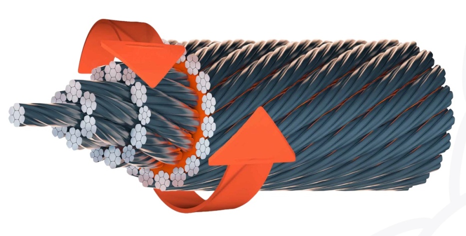 钢丝绳应选择阻旋转结构,例如35W×7(K7)、40W×7、15×K7等结构(图2),可以阻止钢丝绳负载下结构性旋转。