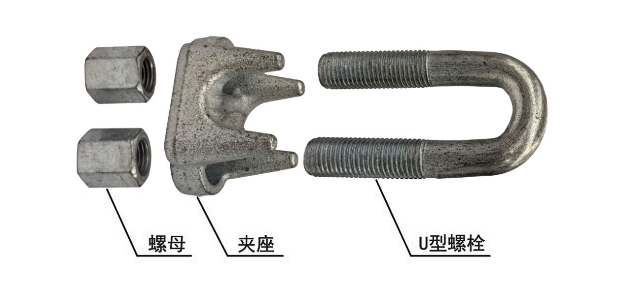 钢丝绳夹的构造由U型螺栓、夹座与螺母三部分组成(图3)。