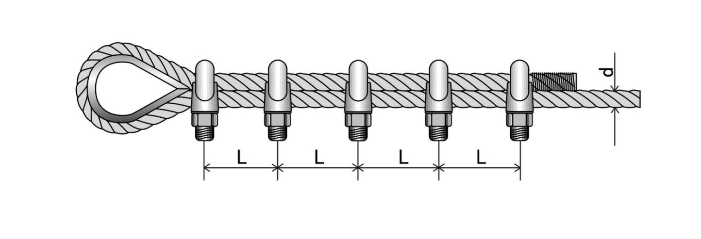 钢丝绳夹间的距离L等于6~7倍钢丝绳直径d(图6)。